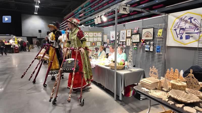 Rencontre avec les Echassières Violette et Marguerite présentent à la Saint Eloi Expo. Itv "Les grandes dames" Violette et Marguerite, Comédiennes échassières.