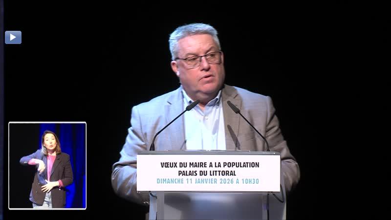 Emission régulière Voeux du maire - Voeux du maire a la population Diffusée le le 11 janv. 2026 01h06'52'' 37 vues Voeux du maire Votre navigateur ne prend pas en charge les vidéos HTML5. Sommaire - Voeux du maire à la populationDescriptionVoeux du maire à la population. Le dimanche 11 janvier 2026 au Palais du Littoral.