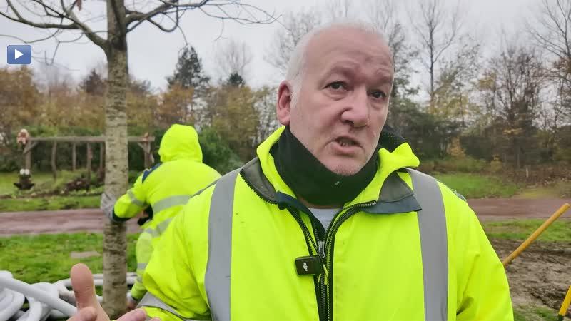 Plantation d'un arbre spectaculaire au jardin public de Grande-Synthe. Itv Arnaud Redondo, Chef de service Espaces verts, ville de Grande-Synthe - Michel Da Costa, Responsable du Parc Arboré, ville de Grande-Synthe.