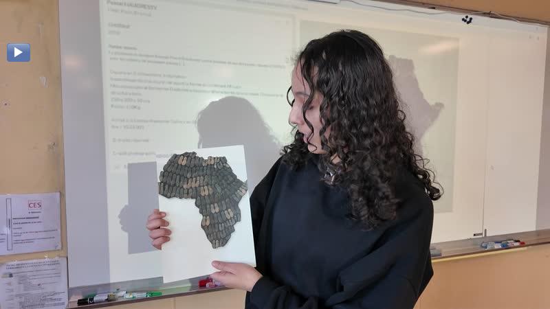 Emission régulière Cameras Synthoises Diffusée le le 24 mars 2026 01'30'' 10 vues Caméras Synthoises Votre navigateur ne prend pas en charge les vidéos HTML5. Sommaire - Oeuvre de Pascal Haudressy, cartographie - Afrique (2010) présentée par Lina MouchouDescriptionCaméras synthoises : Une semaine, une oeuvre par les élèves du collège Anne Frank. Oeuvre de Pascal Haudressy, cartographie - Afrique (2010) présentée par Lina Mouchou, Elève de 3e.